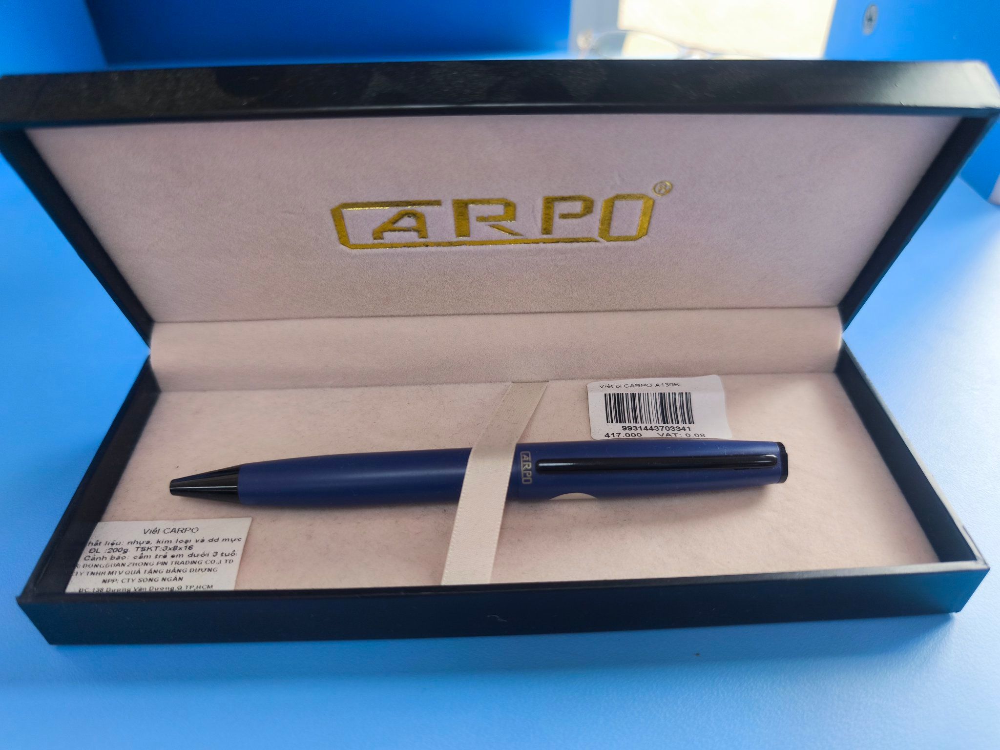 ✨ Viết CARPO – Bút ký cao cấp sang trọng Thương hiệu: CARPO Xuất xứ: Việt Nam Chất liệu: Kim loại cao cấp, phủ sơn tĩnh điện Kích thước: Dài 14 cm Trọng lượng: 80g Đóng gói: Hộp quà tặng CARPO cao cấp